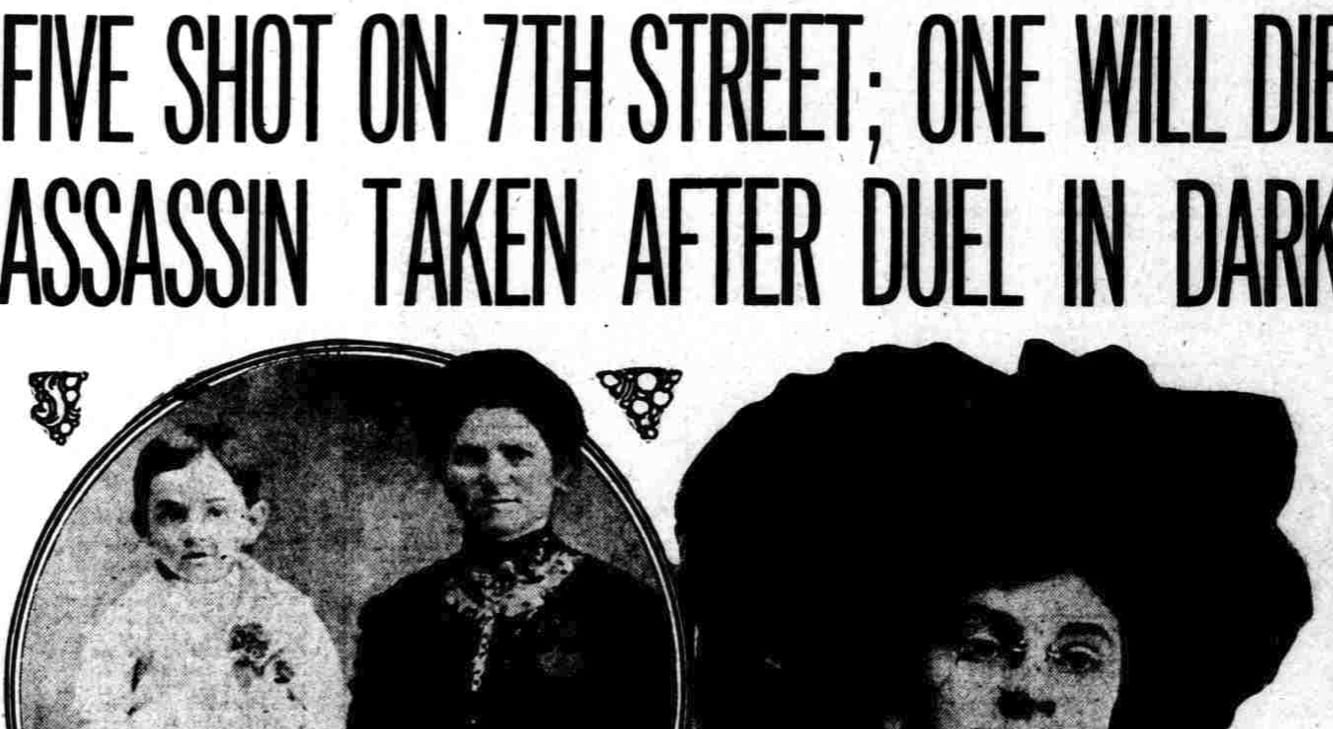 Mrs. Lena Raboy, the mother-in-law, forty-five years old, is in a critical condition at Emergency Hospital, and her death is momentarily expected. One bullet entered her chin, passed through the head, and lodged against the spinal cord. She is paralyzed from the neck down, and physicians say there is no hope for her recovery.