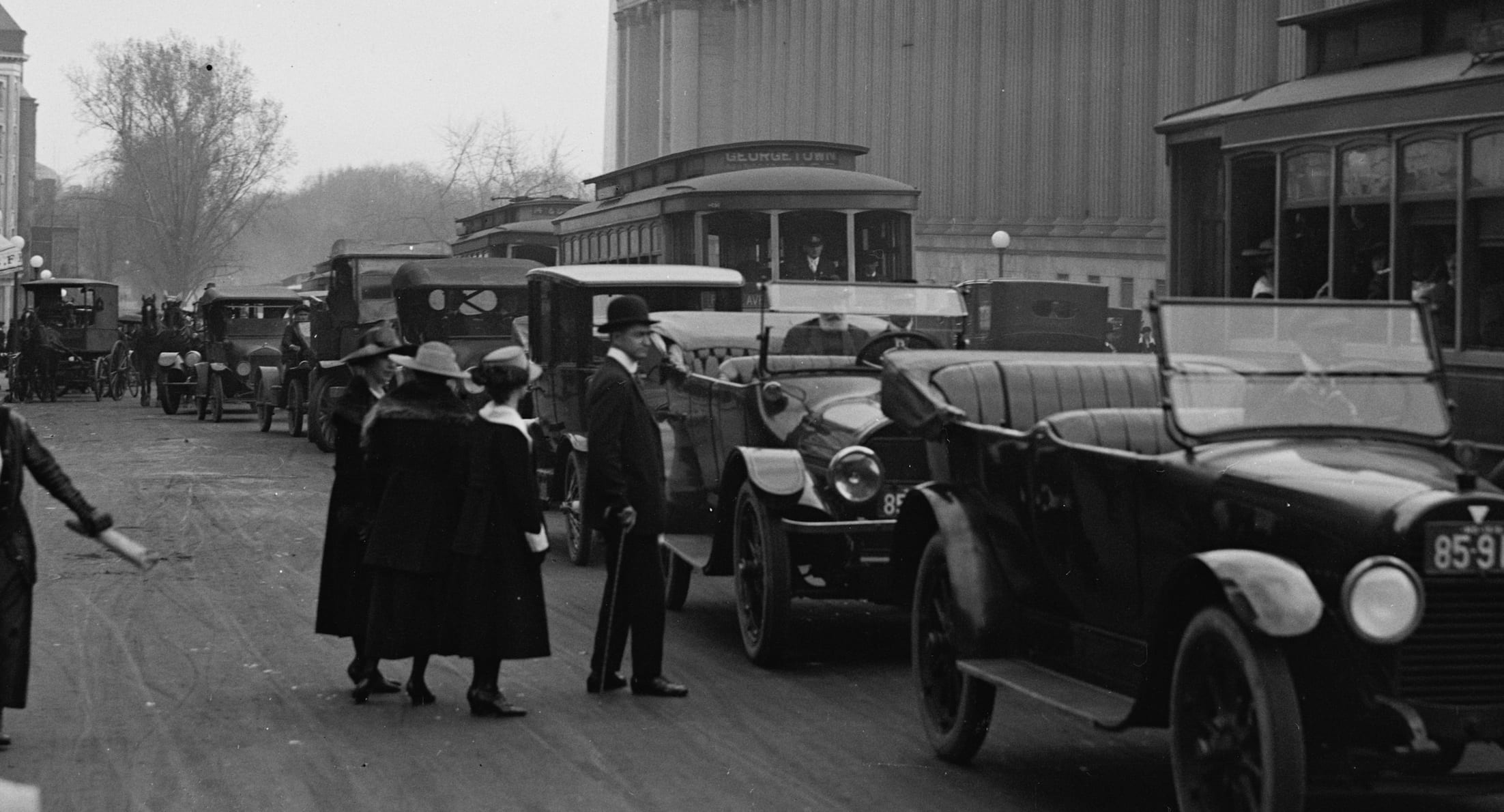 This is what a traffic jam looked like on 15th St. right next to the Treasury Department around 1915. These two photos were from the Library of Congress.